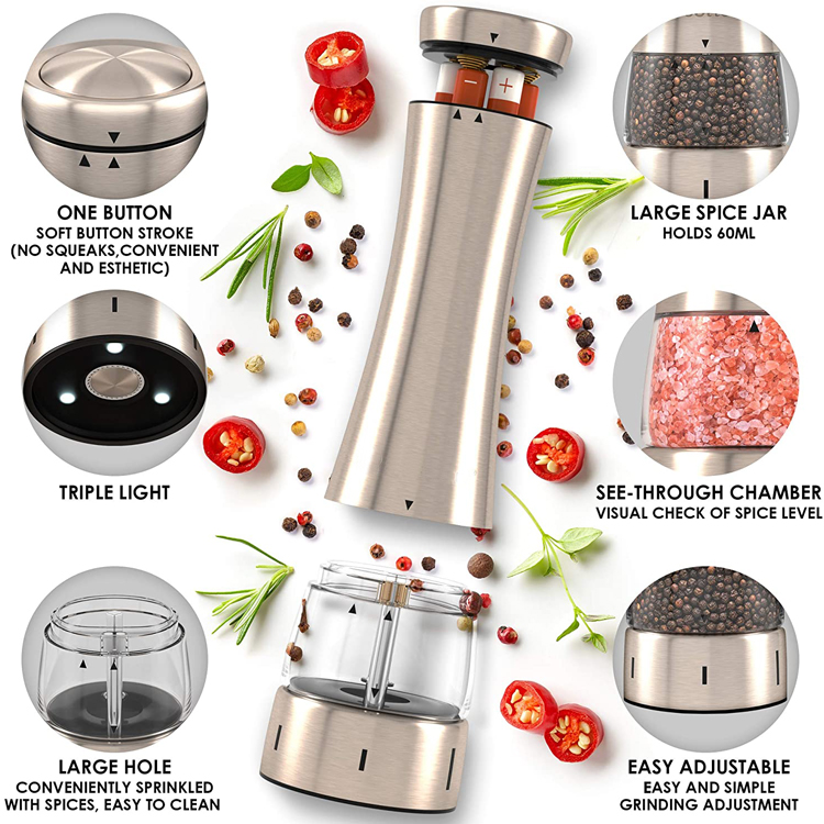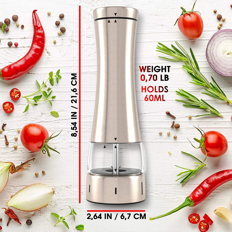 | BESCHREIBUNG: | Elektrische Pfeffermühle (Edelstahl) mit dreifachem LED-Licht |